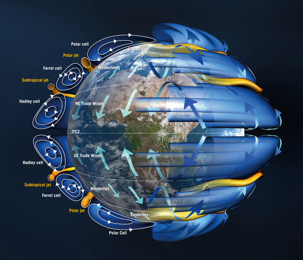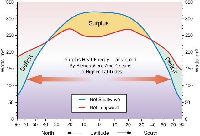 Figure 5, basic heat flows from the equator north and south