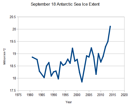 Gavin says half of coastal Antarctica was super-duper hot last month, which explains why it is blowing away all records for the amount of sea ice.