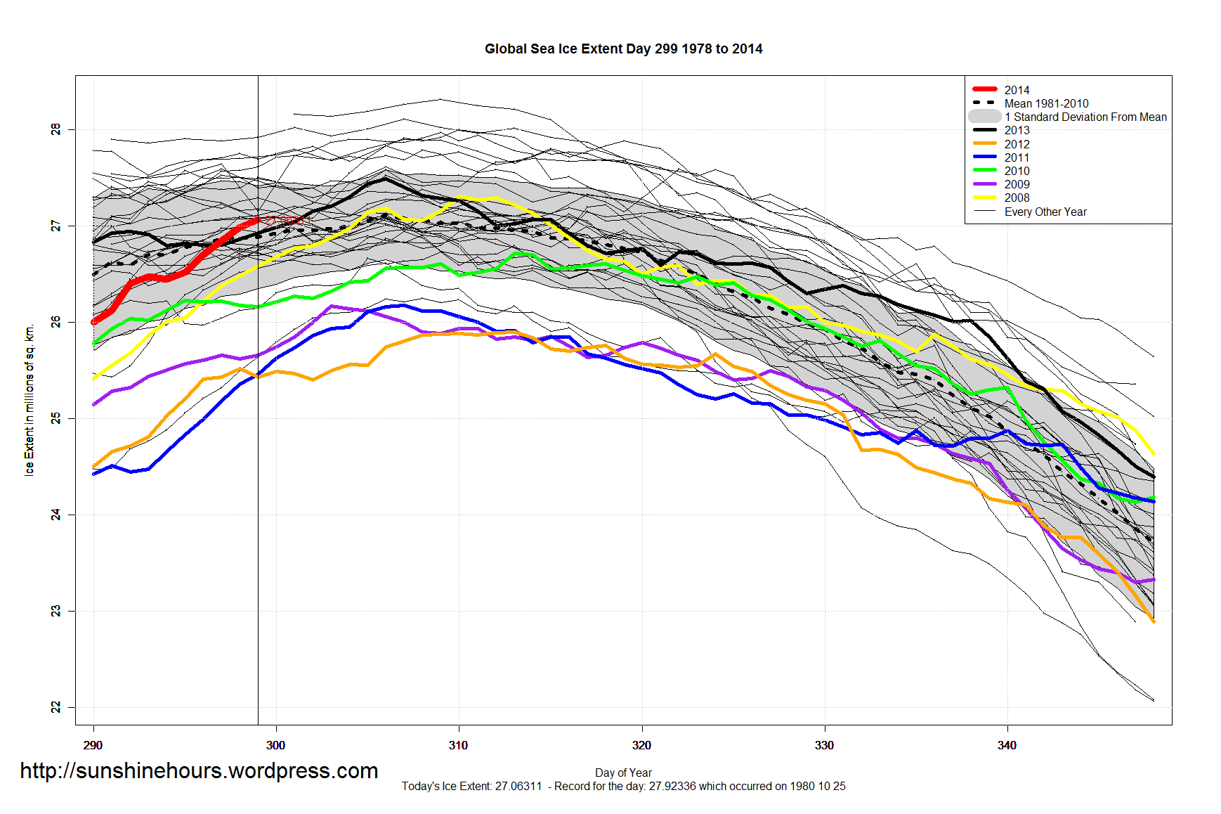 - Antarctic Sea Ice Extent is 828,000 sq km above the 1981-2010 mean.