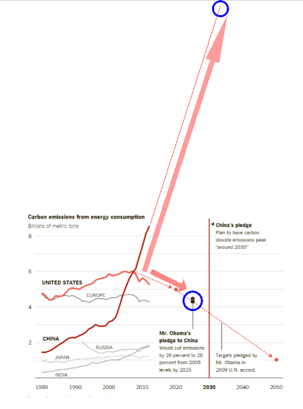 Obama’s “climate” deal allows Chinese CO2 emissions to continue growing in a hockey stick for the next 15 years.