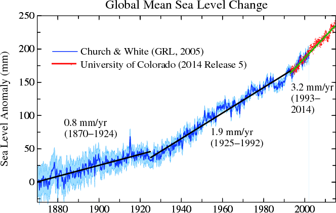Hansen wanted to show a non-existent increase in sea level rise rates, so he simply cheated by tacking on a different measurement system after 1993 – and throwing in a completely fake Global Isostatic Adjustment in the post 1993 data.