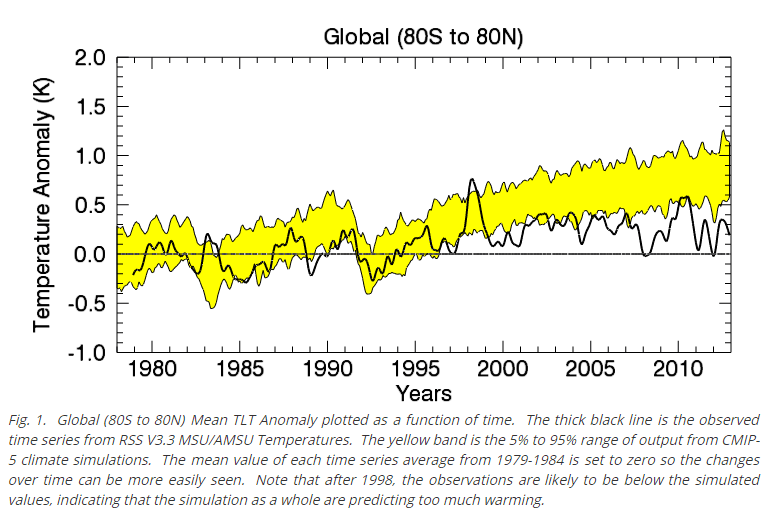 Our most accurate global temperatures are from satellites, and they show little or no warming. Temperatures are far below climate model forecasts
