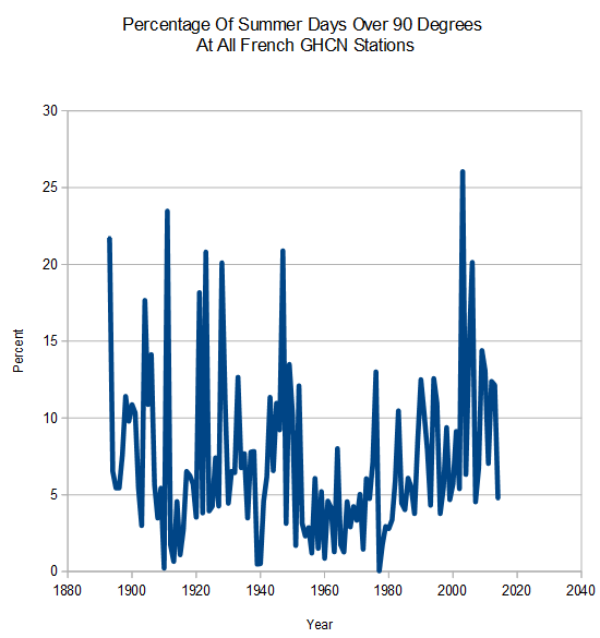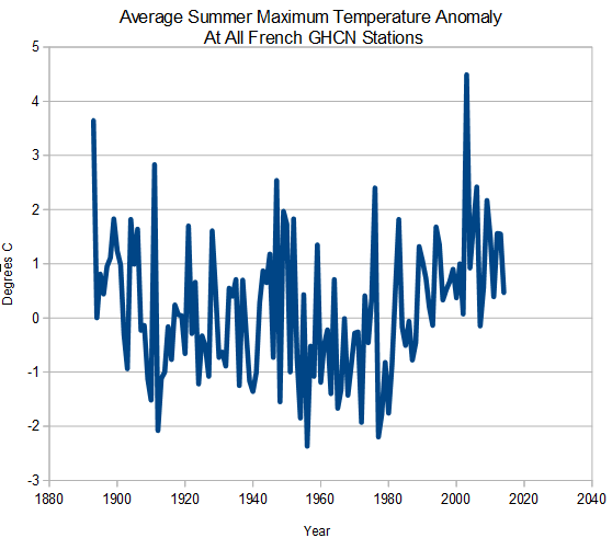 The average maximum temperature in France this summer was just above average, and the frequency of hot days was below average.