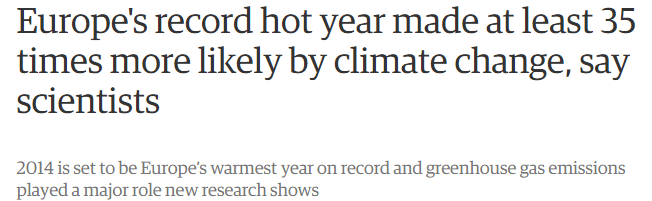 The fraudsters at The Guardian claim that this was Europe’s hottest year ever, due to “greenhouse gas emissions.” Only problem is – it wasn’t hot this year in Europe.