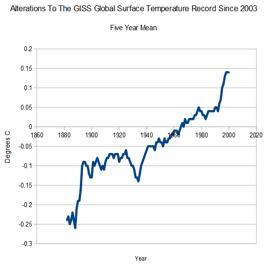 The graph below shows how Gavin has altered his own global surface temperatures by 0.4 C, just since 2003.