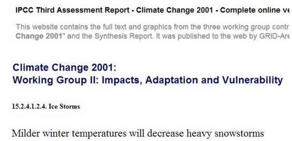In 2001, the UN IPCC said “Mild winter temperatures will decrease heavy snowstorms”