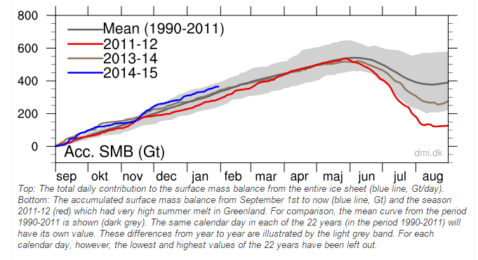 The ice sheet has gained a near record 350 billion tons of snow since August