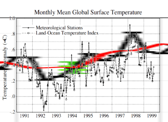 But that is only half of the hockey stick. Some of Gavin’s finest tampering is done in the 1990’s data.