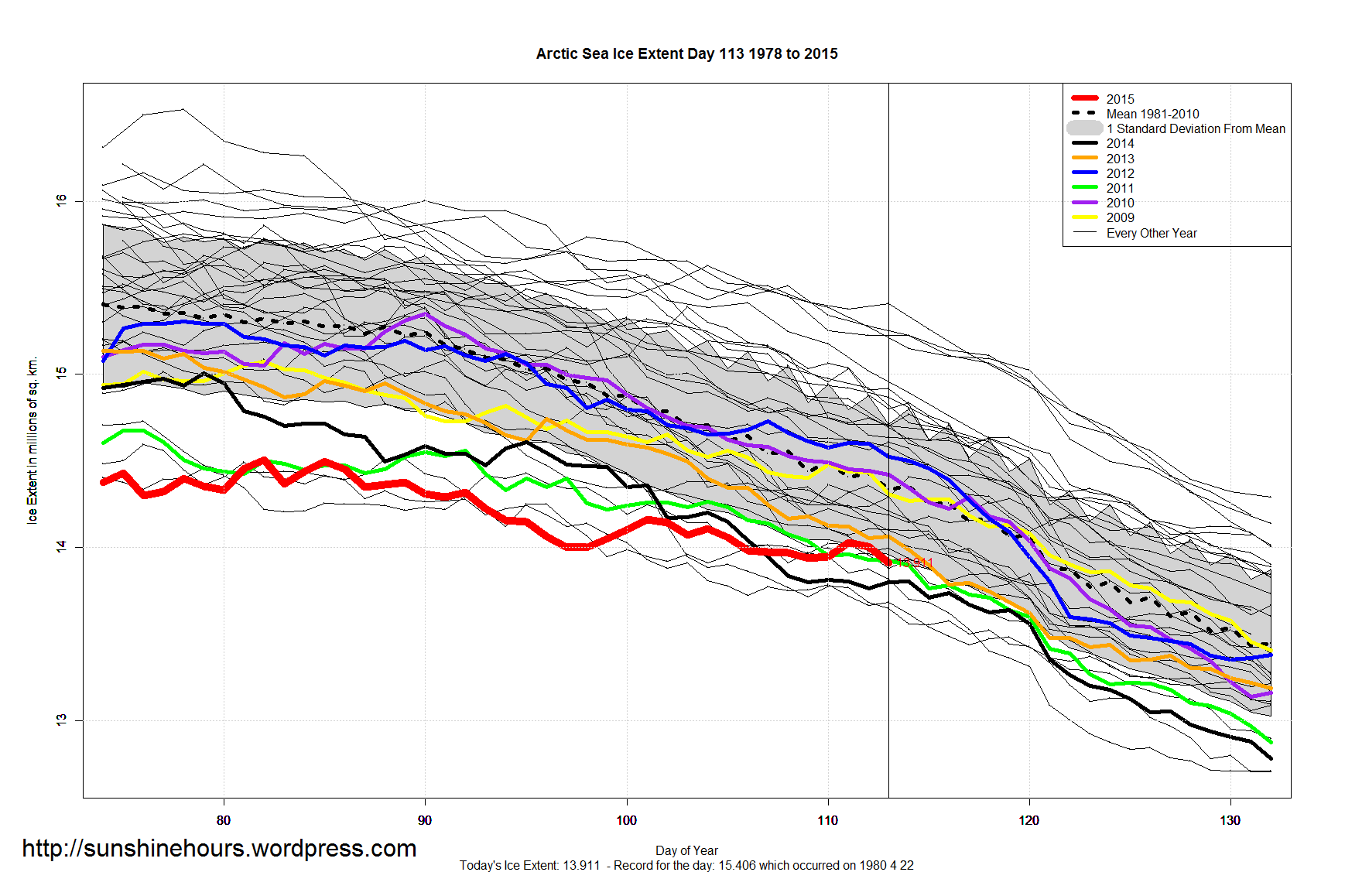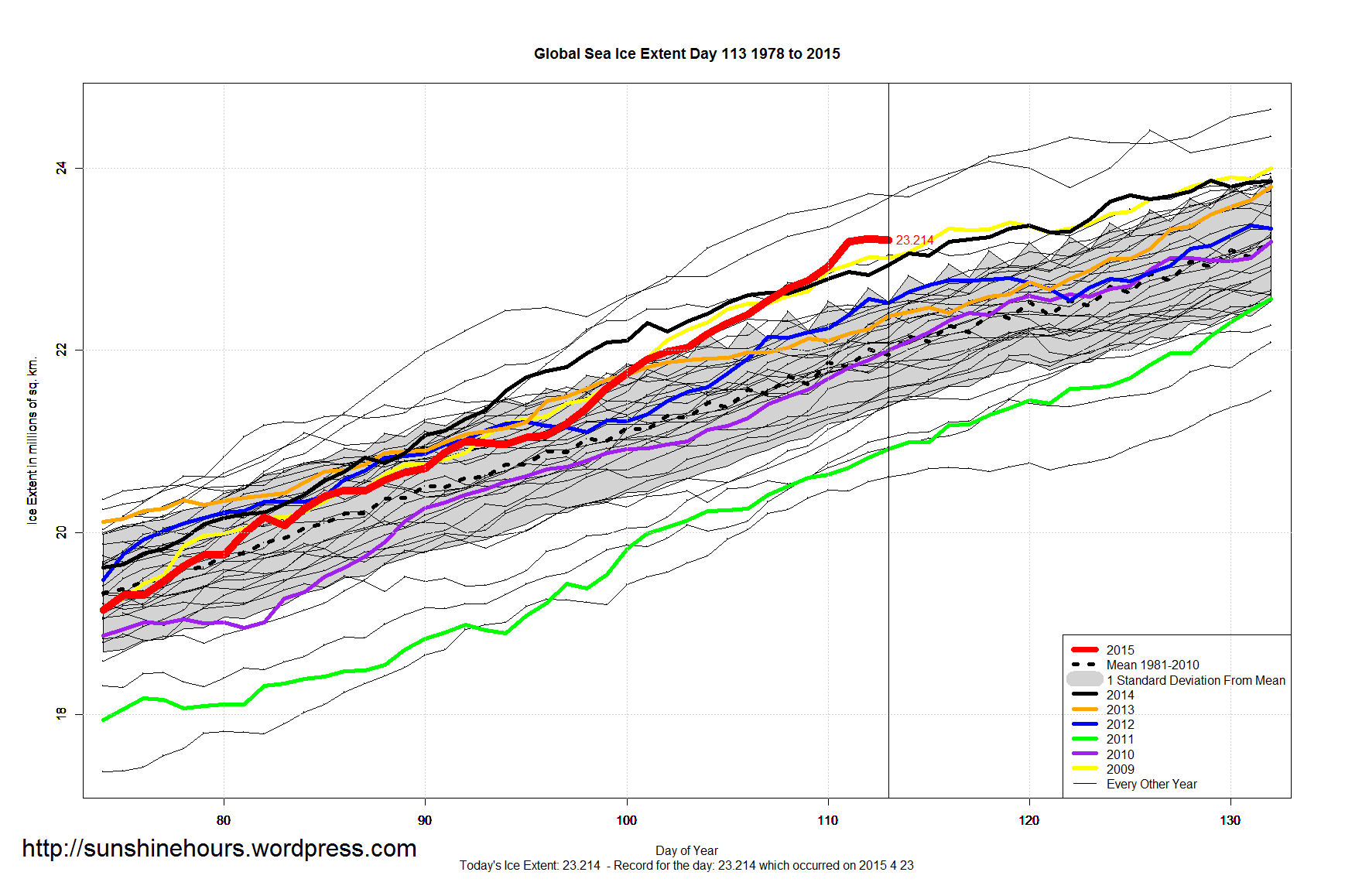 3rd Highest Global Sea Ice For This Day – Well above one standard deviation.