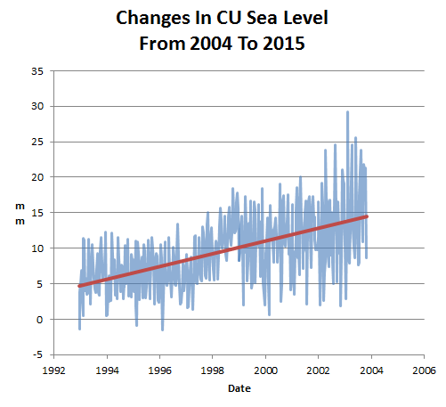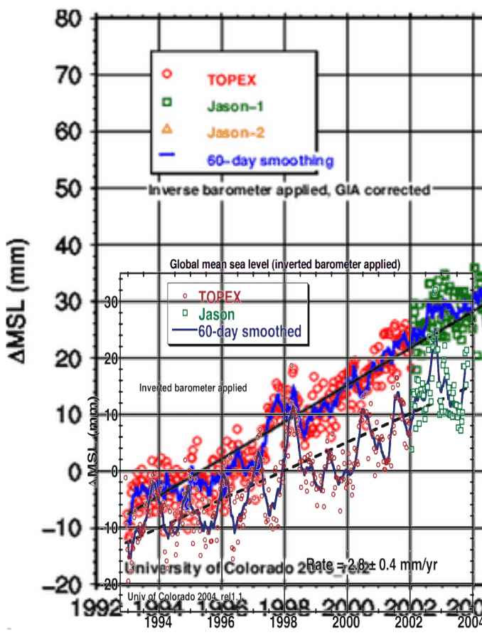 But they didn’t always show that. In 2004, they showed the rate of sea level rise as 2.8 mm/year