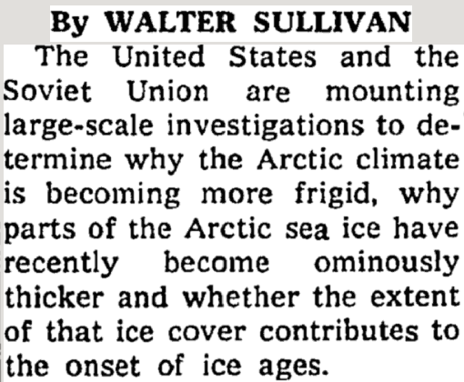 But inn 1970, the Arctic was very cold, and ice was expanding rapidly.