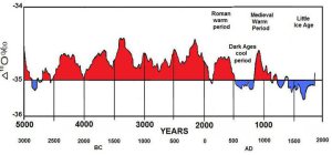 Looking at this data it could be inferred that there is a long cycle of cold to warm and back to cold of around 1,000 years — and the extension of that is we are in a long term tern up to the next peak of somewhere around 2150. Then it will turn down again.