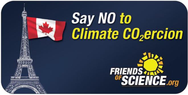 Friends of Science Society have a new billboard campaign – “Say NO to Climate CO2 Coercion” aimed at the upcoming COP-21 climate change talks that countries like Poland may agree with, as reported by Reuters, Oct. 13, 2015. The “Conference of the Parties” (COP) to the UN Framework Convention on Climate Change are meeting for the 21st time will meet in Paris Nov. 30 to Dec. 11, 2015, to try and hash out an international agreement on carbon dioxide reductions, which the Intergovernmental Panel on Climate Change (IPCC) says causes global warming, despite reporting in 2013 that global warming was on ‘hiatus’ for 15 years (today more than 18 years), even though carbon dioxide concentrations had steeply risen.