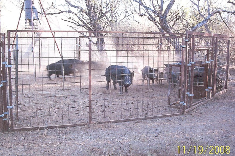 You continue until you have all four sides of the fence up with a gate in the last side”. “The pigs, which are used to the free corn, start to come through the gate to eat that free corn again. You then slam the gate on them and catch the whole herd”.