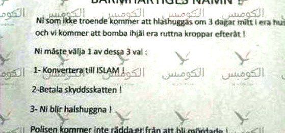 These threats are in accordance with Islamic doctrine as specified in their Koran, the Hadith, the Sira and The Sharia which document the will of Allah and his profit Mohammad.