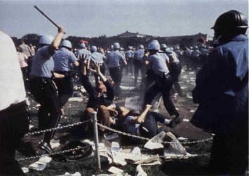 In Chicago in 1968 on August 28 at approximately 3:30 p.m., a young man lowered the American flag at a legal rally taking place at Grant Park. The demonstration was made up of 10,000 protesters. The police broke through the crowd and began beating the boy, while the crowd pelted the police with food, rocks, and chunks of concrete. The chants of the protesters shifted from “Hell no, we won’t go” to “Pigs are whores” as the violence escalated. Tom Hayden, one of the leaders of Students for a Democratic Society, encouraged protesters to move out of the park so the whole city would be tear gassed, and also to made sure that if blood were spilled in Chicago it would happen throughout the city. The amount of tear gas used to suppress the protesters was so great that it eventually made its way to the Hilton Hotel which held many prominent politicians. The police were taunted by the protesters with chants of “Kill, kill, kill” while they sprayed demonstrators and bystanders indiscriminately with tear gas. The police assault in front of the Hilton Hotel the evening of August 28 became the most famous image of the Chicago demonstrations of 1968. The entire event took place live under the T.V. lights for seventeen minutes with the crowd shouting, “The whole world is watching”.