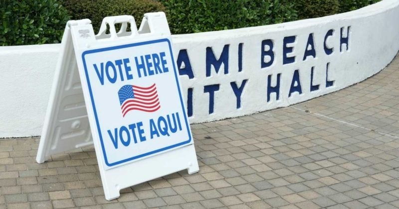 Florida is among the states with early voting. It’s also a state with two recent arrests for election-related crimes. Here, voters make their choices Oct. 24 at Miami Beach City Hall.