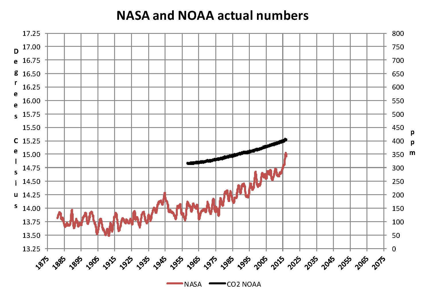 By contrast the previous comparable period of the last part of 2010 through 2013 shows about the same increase for CO2 at 1.1% but no increase for global temperature but actually small decrease. Worse it appears that this current strange upward trend will continue as the values shown here are based on a 12 month moving average and the current values being published by NASA have been very high for the past 7 months and therefore I would expect the NASA plot to be well over 15.00 Celsius within a few months and certainly before the end of 2016. After COP21 the need for Fake Warming was no longer needed and so we are seeing a downward trend developing. With the new administration we may see the end of data manipulation from NOAA and NASA and a return to real science political science.