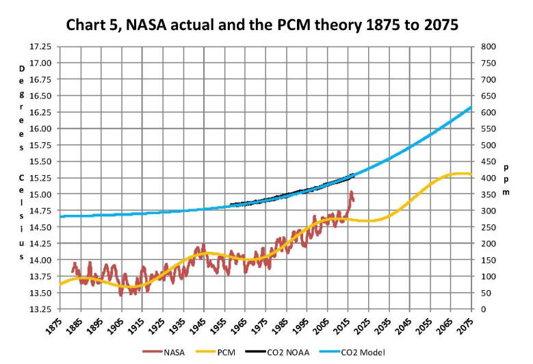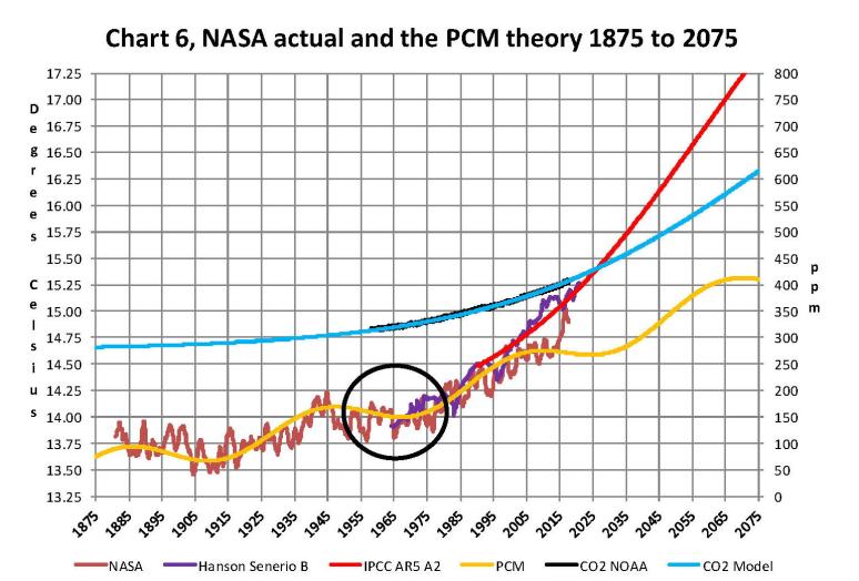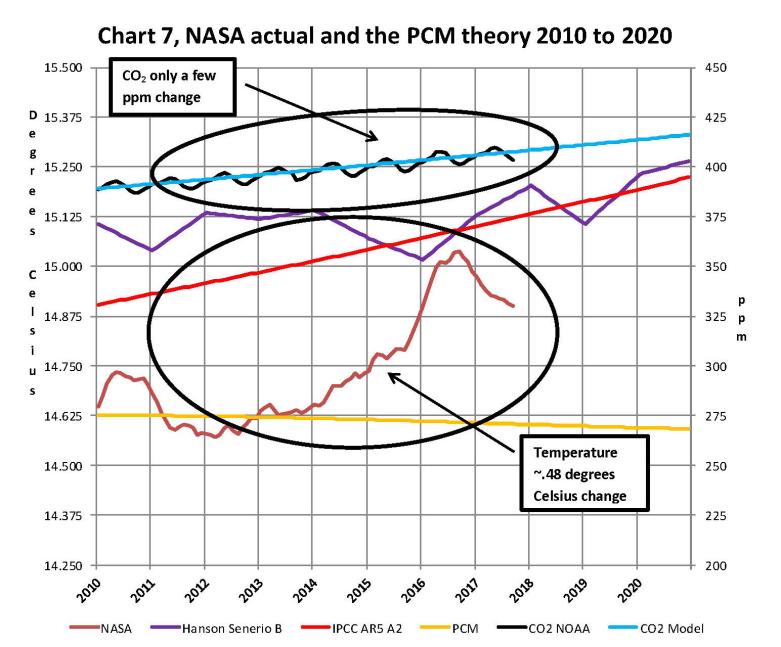 When using a 12 month running average for global temperatures up until 2014 the PCM model was within +/- .01 degrees of what NASA was publishing in their LOTI table since the early 1960’s as shown in Chart 5. Further the back projection of the PCM plot matched historical records and global temperatures going back past the time of Christ. It should also be considered that geologically CO2 levels have reached levels many times that of the current 400 ppm without destroying the planet so the current hysteria over the current very small numbers can only be explained by political science not real science.