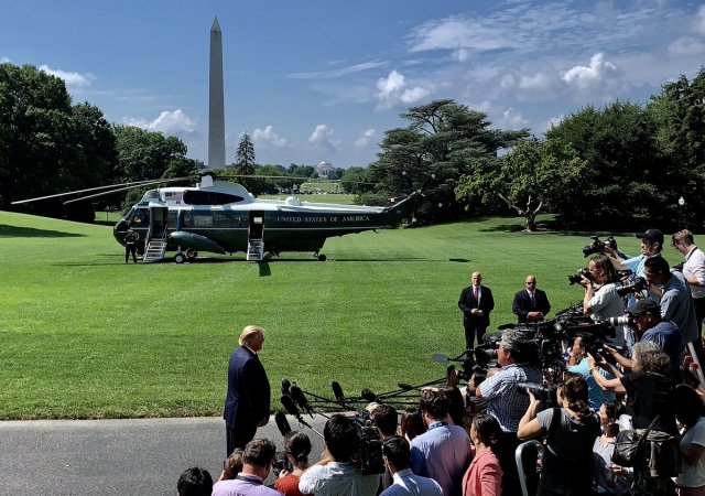 Chopper pressers are the best pressers. Earlier this morning President Trump delivered remarks to the assembled press pool as he departing the White House for a visit with wounded warriors at Walter Reed medical center in Bethesda, Maryland. [Video and Transcript below]