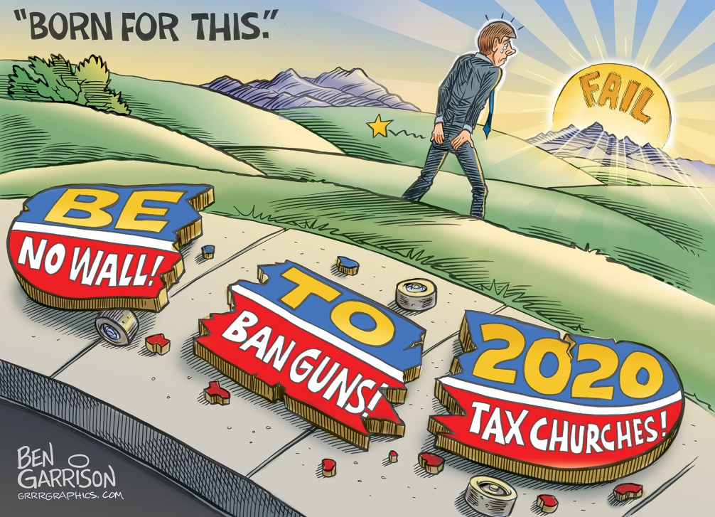 He pitched the usual climate change nonsense, outright gun bans, a Green New Deal, and more abortion. He wanted to tax Christian churches if they refuse to support gay marriage. In short, he wanted to strip away more liberty from Americans while subjecting them to higher taxes, more government tyranny, and crime.
