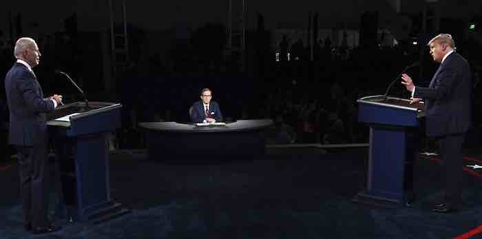 Instead, Biden landed a few blows himself on irritated Trump, but was mostly vague and unfocused. Slumberin’ Joe’s best line? “Would you shut up, man?” So this debate merely underscored their reputations: Trump – an undisciplined communicator who can’t shine for self-indulgence. Biden – as a vapid politician, past his prime, staggering towards the finish line – even if by wheelbarrow.