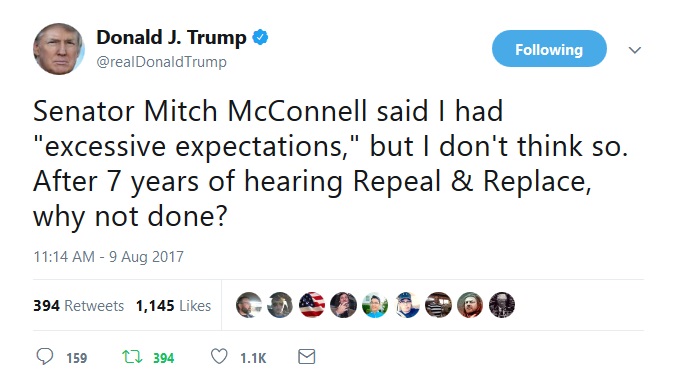 Consider Senator Mitch McConnell telling the President of the United States that he had “excessive expectations” because President Trump doesn’t understand how things are done around here: