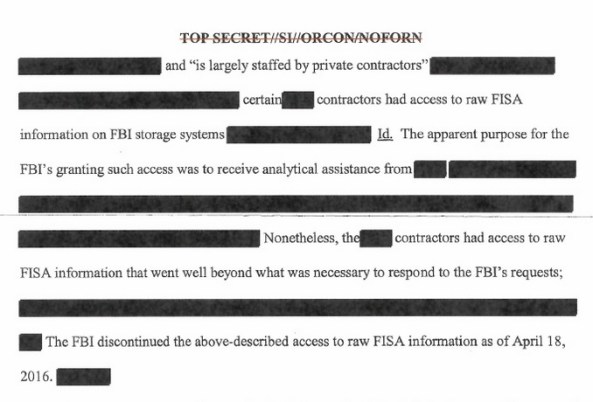Private contractors with access to “raw FISA information that went well beyond what was necessary to respond to FBI’s requests“: