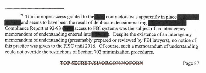 All of this is laid out inside this 99-page opinion from FISC Presiding Judge Rosemary Collyer who also noted that none of this FISA abuse was accidental in a footnote on page 87: “deliberate decisionmaking“:
