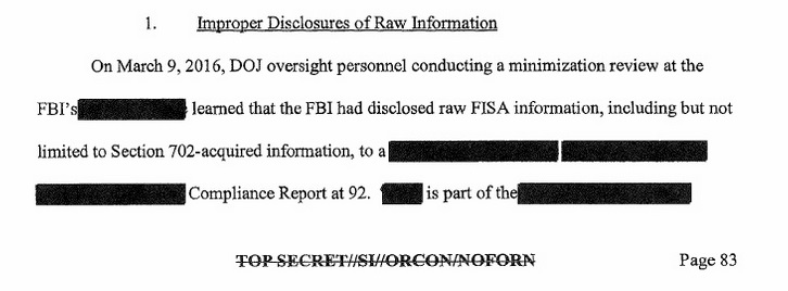 As you can see below, on March 9th, 2016, internal auditors noted the FBI was sharing “raw FISA information, including but not limited to Section 702-acquired information”.