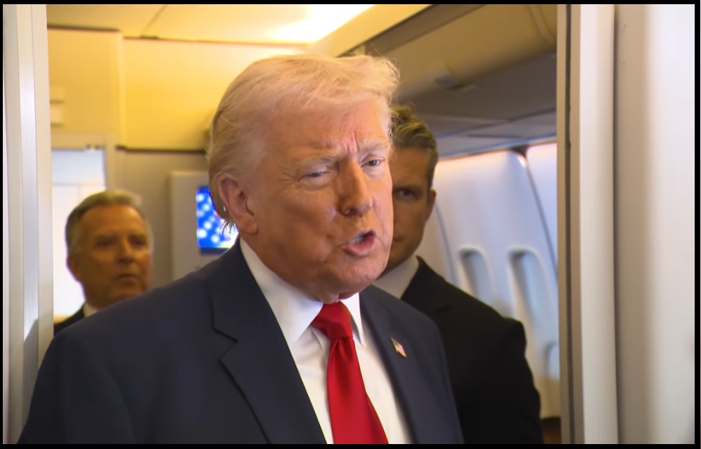 President Trump gives an impromptu press conference aboard Airforce One returning to Florida following the solemn ceremony at Dover Airforce Base. Emissary Steve Witkoff and Defense Secretary Pete Hegseth also delivered some comments on questions from the media.