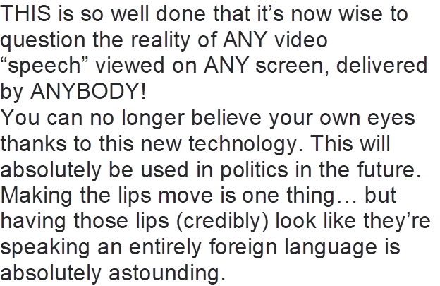 The words “disinformation” and “deep fakes” are as disingenuous as the term “Patriot Act.” The definitions of disinformation and deep fakes are where the government regulations steps in using their portals into Big Tech to identify content on platforms that is deemed in violation.