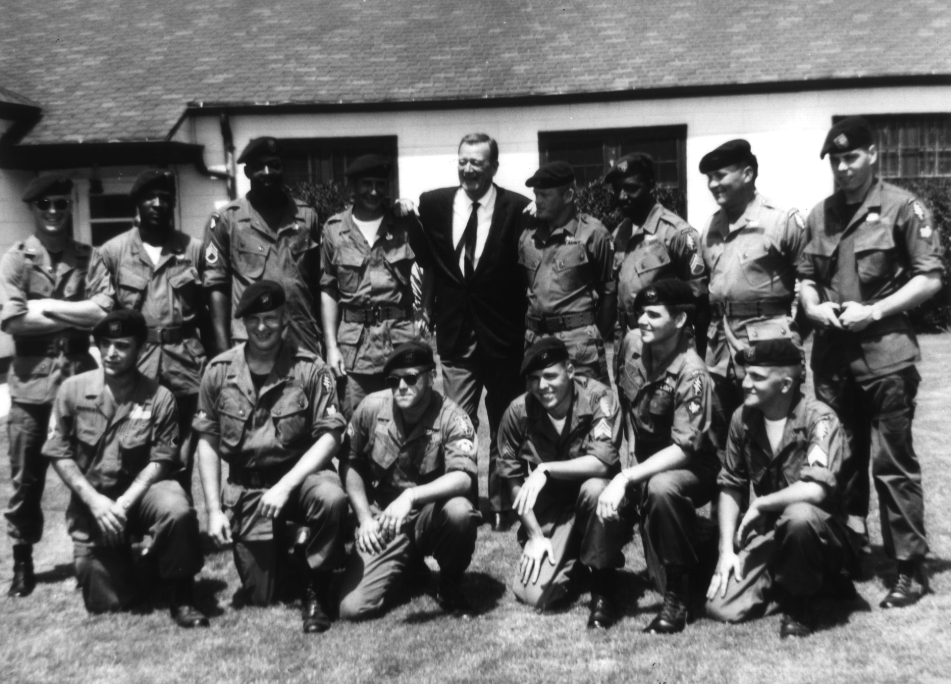 Shortly after Kennedy’s assassination the Special Warfare Center was renamed the John F. Kennedy Center for Special Warfare (in his honor) and all Special Forces troopers feel a special relationship to the young dynamic President who saw the worth of their elite unit. Six years after President Kennedy was assassinated I was a young lieutenant at Ft Brag in the 7th Special Forces group undergoing culture and language training prior to deployment to Vietnam. The Vietnam buildup was in full force and when that happens promotions come quicker than they should and I felt bad that I didn’t have the military experiences that many of the others had. But I did bring other factors to the game as I was very good at improvising and I was skilled in almost all of the trades. The only reason I bring this up is that I had a very unique opportunity to meet one the biggest supporters of the military and Special Forces, John Wayne.