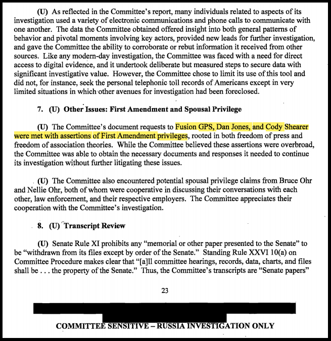 SIDEBAR from CTH ARCHIVES – A fantastic catch by Twitter user “15poundstogo” previously highlighted a key phrase within the Senate Select Intelligence Committee (SSCI) Russia Report Volume-5, showing how the SSCI allowed those who created the Trump-Russia narrative to avoid questioning: